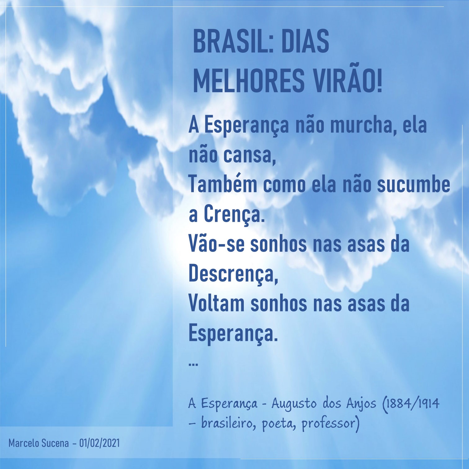 Em meio a discursos negativistas em todas as direções, faz-se necessário o recarregamento da alma com esperança. O futuro é escrito POR CADA UM DE NÓS. Que tenhamos a honestidade e serenidade para visualizarmos saídas para o nosso Brasil.